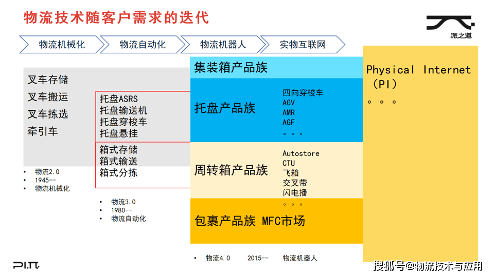 物流手艺的现代化演进已历经近百年,构成了清晰的手艺代际划分。二和之后,叉车取托盘手艺的普遍使用,鞭策了物流科技进入以机械化为焦点的2。0时代,这一阶段的焦点特征是单点设备的机械化替代。自1980年代起头,跟着计较机节制手艺的成熟,托盘从动化系统取料箱从动化系统快速兴起,引领行业迈入物流从动化的3。0时代,实现结局部流程的从动化跟尾。颠末约30年的高速成长,发财经济体已根基完成了物流从动化根本设备的全面扶植。