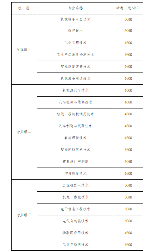 专业组二聚焦汽车及相关制制类专业,涵盖新能源汽车手艺、汽车检测取维修手艺等8个专业,此中模具设想取制制膏火为5060元/年,其余7个专业膏火均为4600元/年,包含当下抢手的新能源汽车、智能网联汽车相关专业,就业前景广漠。专业组三以电气取从动化类专业为从,包含工业机械人手艺、机电一体化手艺、电子消息工程手艺、电气从动化手艺、物联网使用手艺、工业互联网手艺6个专业,前4个专业膏火为5060元/年,物联网使用手艺、工业互联网手艺膏火为4600元/年,契合智能化财产成长趋向。包含计较机收集手艺、挪动使用开辟、软件手艺、大数据手艺、云计较手艺使用5个专业,其入彀算机收集手艺、软件手艺膏火为7800元/年,其余3个专业膏火为4600元/年,适配数字经济成长需求。