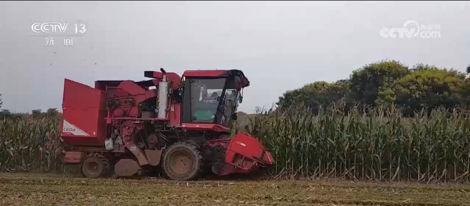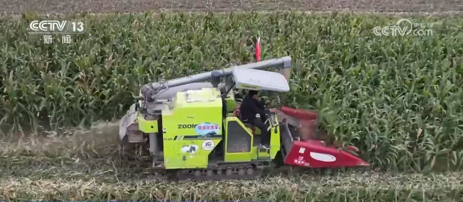 正在山西晋中祁县一合做社的玉米田内,履带式收割机正正在泥泞的玉米地里穿越功课,纷歧会,一玉米地就收割完毕,同时还完成了玉米棒的脱皮和秸秆破坏还田。